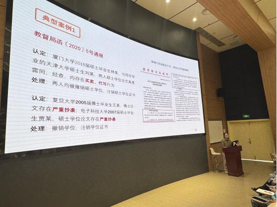 随后,科技处李一飞老师以《“研”而有“信”》为题,带来了一场内容详实、案例深刻的专题讲座。他从“科研诚信建设总体背景”、“常见科研失信行为”、“典型案例警示”及“相关文件解读”四个维度展开,结合国家自然科学基金委员会等机构通报的真实案例,深入剖析了科研失信的严重危害,系统解读了国家与学校的相关规章制度,强调了珍视学术羽毛、严守学术规范的重要性。讲座内容发人深省,在现场引发了广泛共鸣与深入思考。