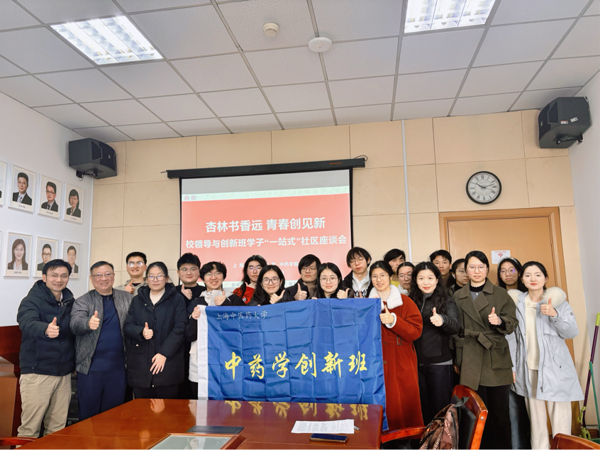 为深化“一站式”学生社区建设,传承中医药文化精华,搭建校领导与学子面对面交流的成长平台,1月4日上午,“杏林书香远青春创见新——‘问道本草’读书会暨校领导与创新班学子‘一站式’社区座谈会”在10413会议室顺利开展。上海中医药大学党委副书记周斌、我院党委副书记陆婧、副院长郑昌武、青年班主任缪雨濛、辅导员张晴与23级中药学创新班全体同学共同参与。